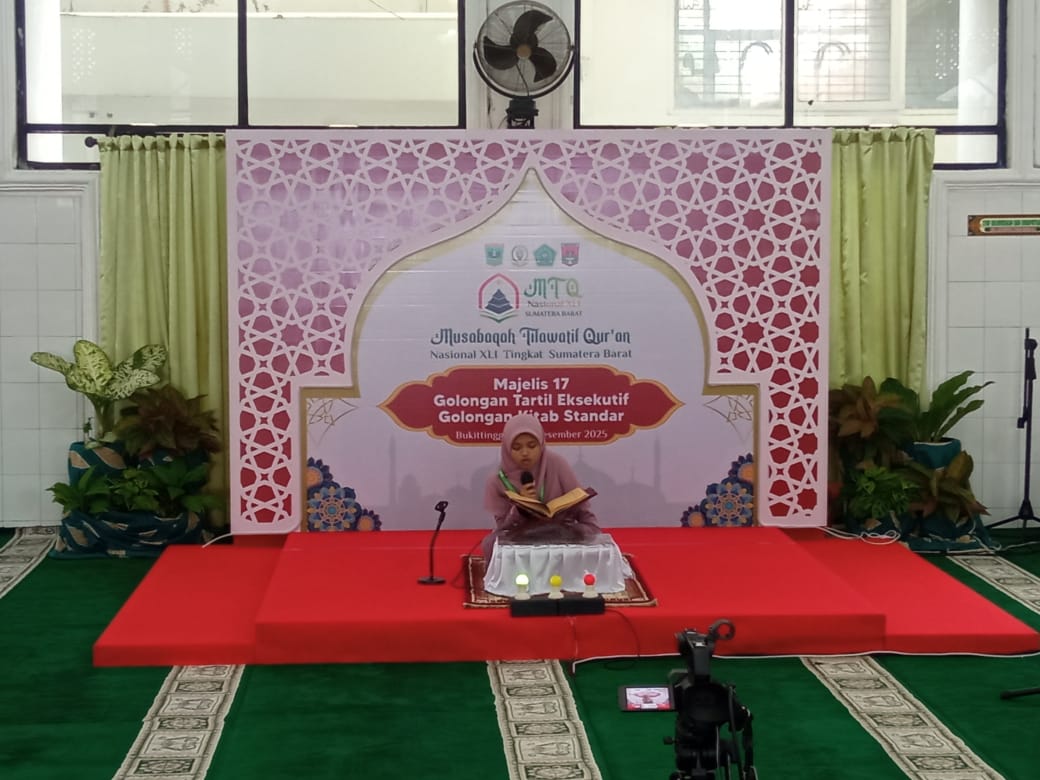 Bukittinggi, BDI — Masjid Mukhlisin Manggis, Kota Bukittinggi, Rabu (17/12/2025), dipenuhi lantunan ayat suci Al-Qur’an yang mengalun khidmat saat babak final Musabaqah Tilawatil Qur’an (MTQ) Nasional XLI Tingkat Provinsi Sumatera Barat berlangsung. Para finalis terbaik dari berbagai daerah tampil membawa semangat dan harapan, tidak hanya untuk meraih prestasi, tetapi juga meneguhkan nilai-nilai Qur’ani di tengah masyarakat.