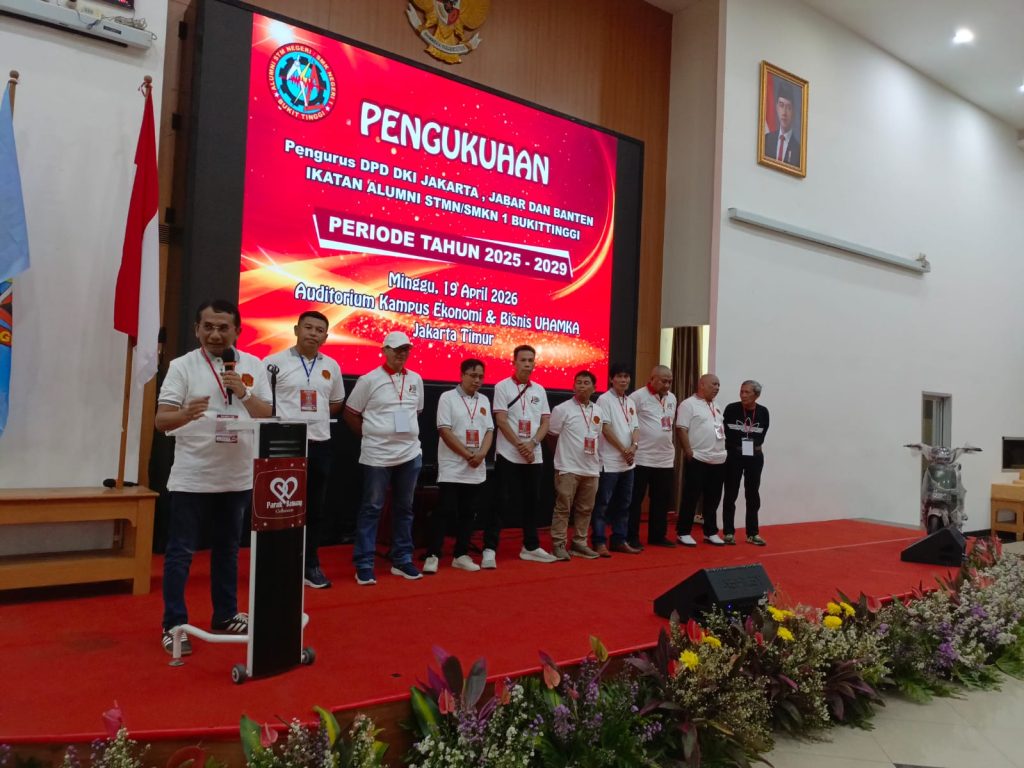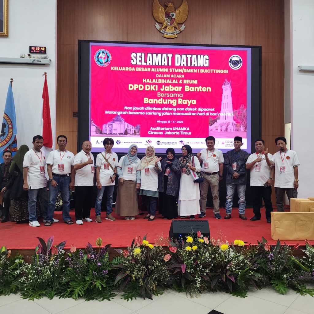 Jakarta, BDI – Kolaborasi DPD Alumni STM/SMK Negeri 1 Bukittinggi (DPD DKI, DPD Bandung Raya, DPD Jabar, DPD Banten menghadirkan acara Halal Bi Halal Alumni yang dilaksanakan di Jakarta Timur pada 19 April 2026. Acara yang berlangsung di Gedung UHAMKA Ciracas Jakarta Timur ini dihadiri oleh lebih dari 300 alumni mulai dari angkatan 1963 hingga angkatan 2024.