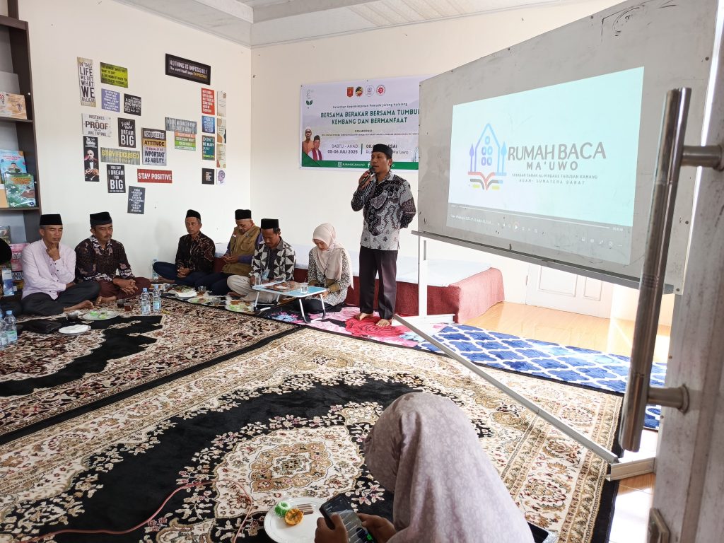 Sementara itu ketua Yayasan Taman Firdaus dalam sambutannya menyampaikan bahwa Rumah Baca Ma’ Uwo dihadirkan untuk memberikan sarana edukasi bagi warga masyarakat Jorong Halalang.