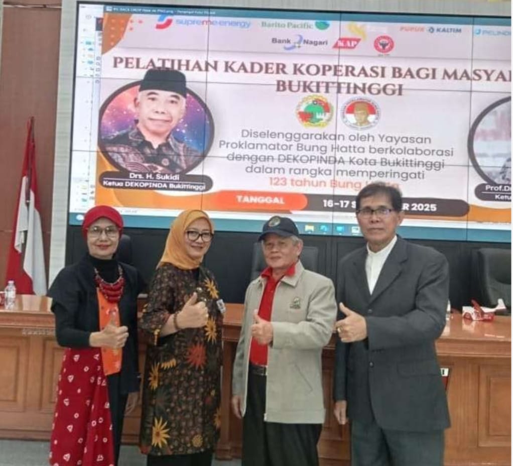 Bukittinggi, BDI – Amruh Kumandang dan Susi Djalal merupakan dua dari sejumlah pakar yang duduk dewan Koperasi Indonesia Daerah yang dipercaya menjadi nara sumber dan coaching dalam mengenang 123 tahun Bung Hatta dengan menggelar kegiatan pelatihan bertema Entrepreneurship dan Mindset enterpreneur didukung DEKOPINDA Kota Bukittinggi yang dihadiri 70 kader dan pegiat, serta pengurus koperasi berlangsung di Aula Kantor Balai Kota Bukittinggi pada hari Selasa-Rabu, (16-17 September 2025).