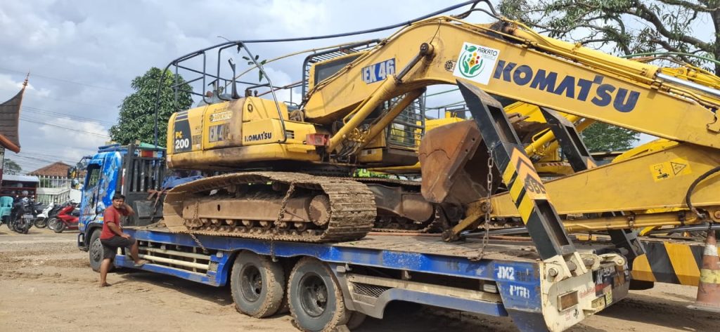 “Alat telah dikirimkan dari Jakarta pada Senin 8 Desember 2025 menuju lokasi bencana di Kabupaten Agam. Menggunakan trado (trailer) khusus alat berat” ujar M. Kasmir 08/12/2025.