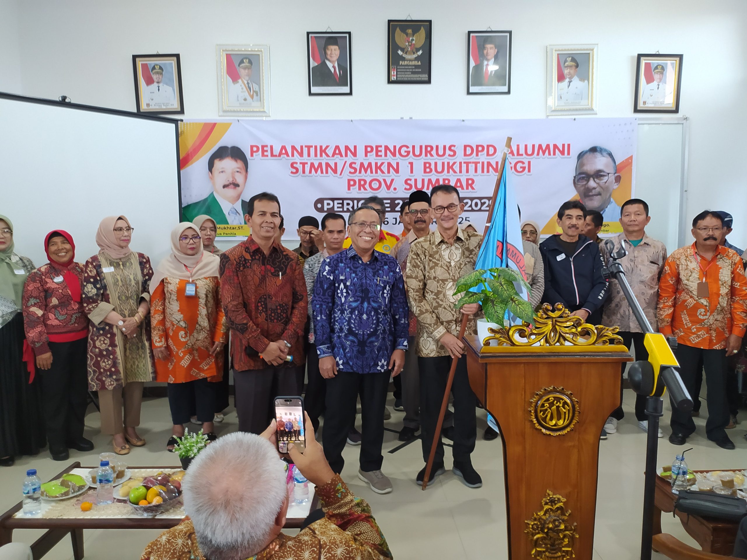 Bukittinggi, BDI – Pelantikan pengurus Dewan Pengurus Daerah (DPD) Sumatera Barat Ikatan Alumni STM/SMK Negeri 1 Bukittinggi berlangsung meriah. Kegiatan ini berlangsung pada Minggu 26 Januari 2025 di Rumah Gadang Alumni komplek SMK N 1 Bukittinggi berlangsung sejak dari pagi hingga sore hari dihadiri oleh ratusan alumni berbagai angkatan dan juga para tamu undangan serta disiarkan langsung di media sosial Bukittinggi dot Info.