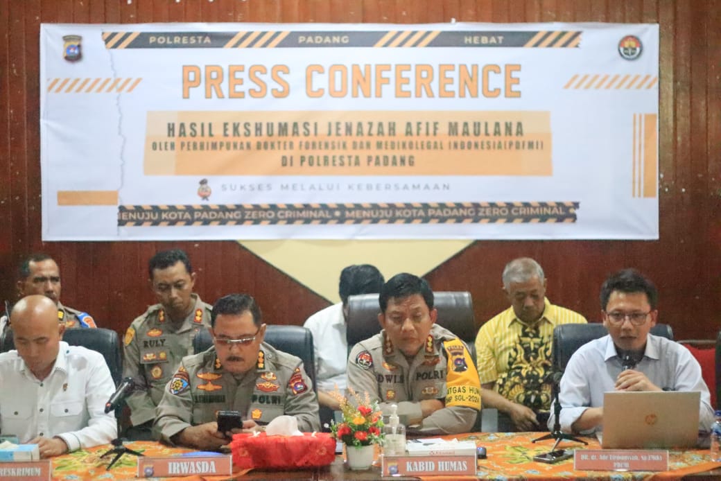 Hasil ekshumasi ini disampaikan oleh ketua tim PDFMI saat digelarnya Konferensi Pers di Polresta Padang, Rabu (25/9) sore.